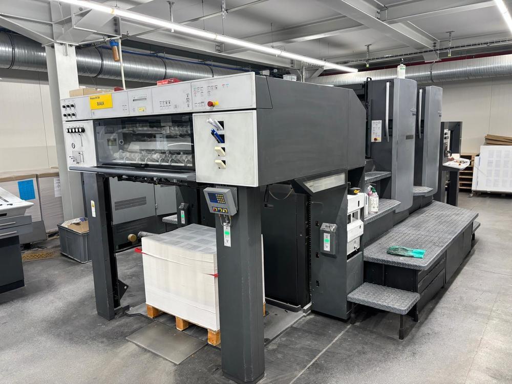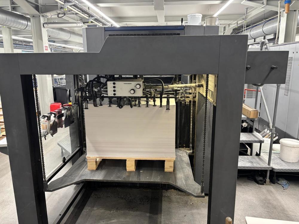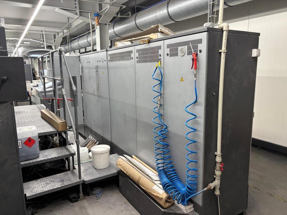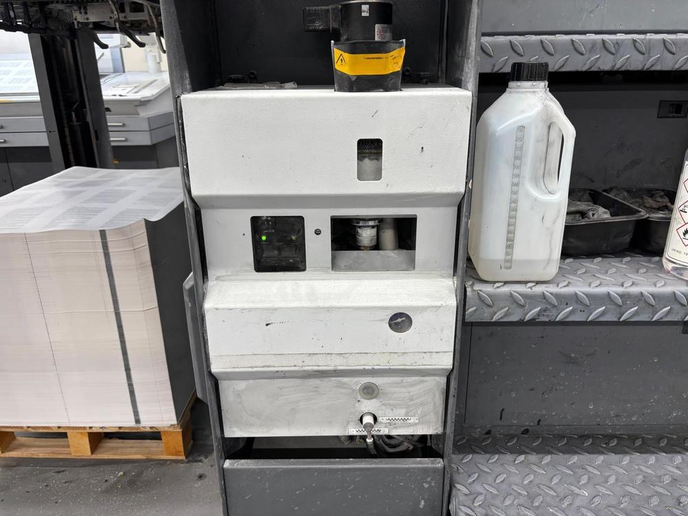 | Description: | Preset Feeder<>Preset Delivery<>Perfect jacket silver<>Auto. Ink Roller Wash up<>Tandem auto Blanket and Impr. Cyl. wash up<>Air cooleD<>ALCOLOR VARIO dampening system<>Autoplate (semi-automatic plate loader)<>CP 2000 Control Center<>Preset - automatic size device<>Ink remote control<>Baldwin<>ELTEX antistatic eliminator<>GRAFIX Beatronic 100 powder spray<>AirStar Pro Air cabinet water-cooled |