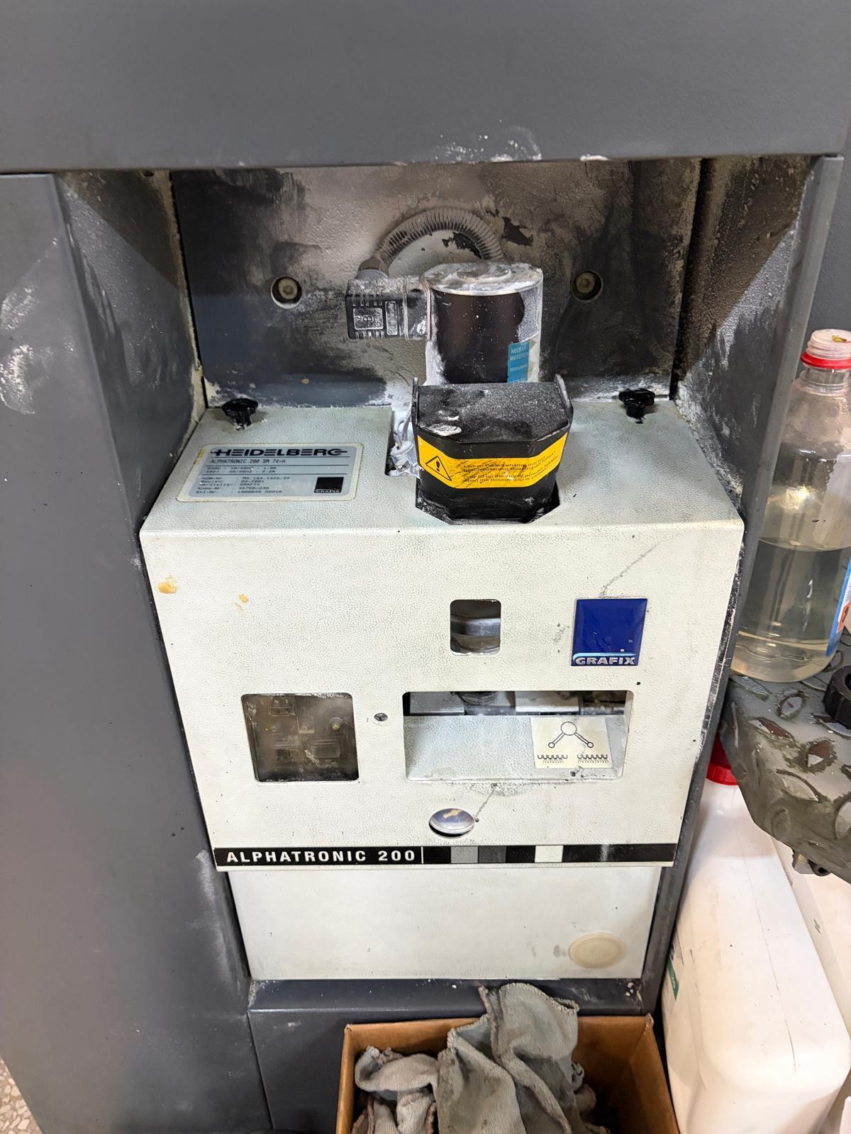 Model SM 74-4H<>Autoplate (semi-automatic plate loader)<>Alcolor automatic Film Dampening<>CP 2000 Control Center<>High pile delivery<>All washing devices<>GRAFIX dryer<>Powder sprayer