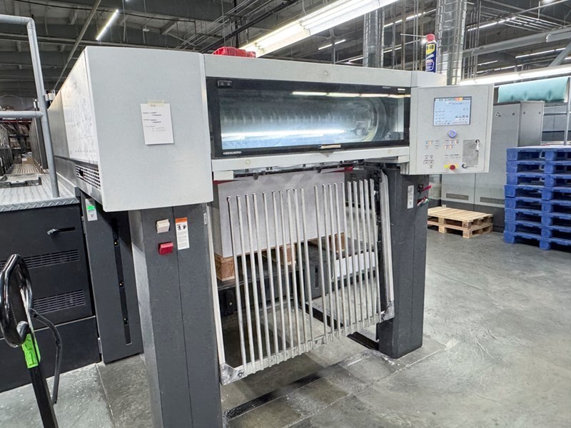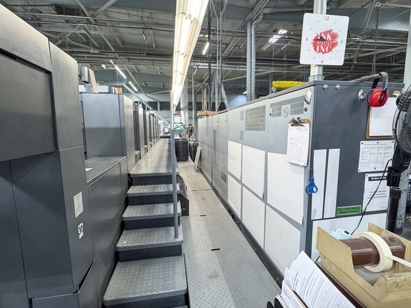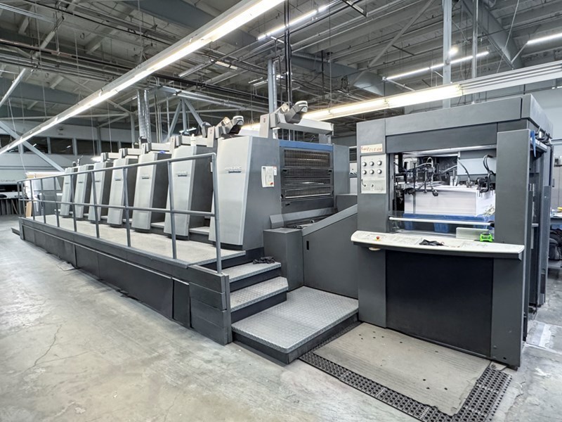 | Description: | Dedicated tower coater <>Prinect PressCenter console for ink and register<>Air-cooled peripherals with CAN control<>Autoplate (semi-automatic plate loader)<>Preset Plus in feeder and delivery<>Non-stop feeder and delivery<>AirStar Pro Air cabinet water-cooled<>Clean CleanStar powder sucker<>Antistatic device StaticStar<>Automatic blanket, roller and impression-cylinder washing device<>anilox coater<>Chambered doctor blades<>Extended Delivery<>CombiStar refrigeration and recirculation<>ITC Ink temperature control<>HEIDELBERG Drystar infra-red dryer + hot air<>Weko AP500 Powder Spray |
