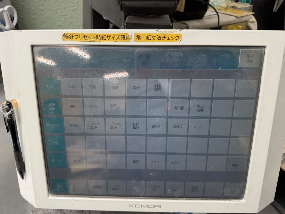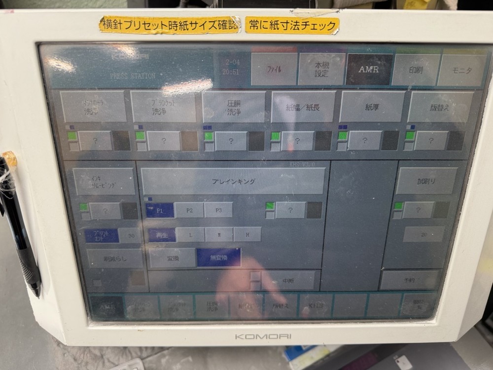 | Description: | KHS, <>plate register, <>powder collector,<>KOMORIMATIC dampening system<>PQC Print Quality Control<>SAPC Semi-automatic plate change<>APC automatic plate changing system<>AMR preset device for sheet size + thickness<>Blanket wash-up device<>Cooking register<>Preset - automatic size device<>Powder sprayer<>Non-stop feeder |
