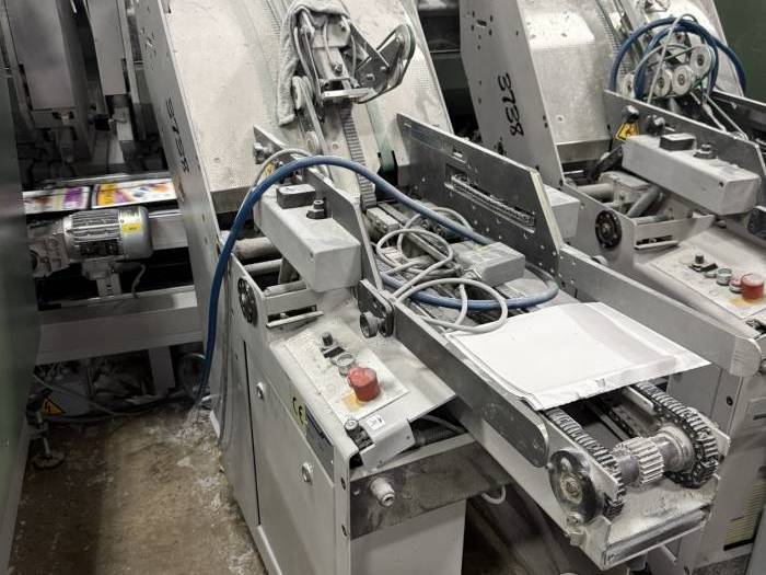 | Description: | Gathering Stations: 8 Stream Feeders<>Feeder Model: Muller Martini 3738<>Trimmer: Muller Martini Zenith-S 3672 Three Knife Trimmer<>Stacker: Muller Martini CB16 with Counting<>Signature Control: ASIR Signature Recognition System<>Spine Preparation: Roughening and Spine Preparation Stations<>• Tip-On Unit<>• Manual Feeding Station<>• Reject Gate<>• Intermediate Elements<>• Transfer into Binder<>• ASIR Signature Recognition System<>• Spine Preparation Station<>• Cool Down Conveyors<>• Conveyor System<>Hotmelt spine + side gluing<>Nipping station<>Pressing unit<>Roughening station<>Premelter<>Laydown unit |
