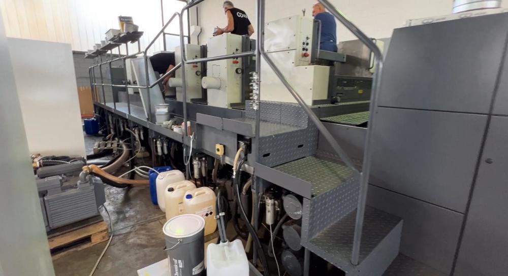 | Description: | Ink Temp. control with Graphometronic cooling system<>Technotrans Beta d dampening water system<>Paper dust extraction in Unit 1<>Color Pilot<>APL automated plate loading (full automatic)<>Non-stop feeder and delivery<>ionizer in the feeder<>IR-dryer Roland Seccomatic<>automatic blanket and impression cylinder washing unit<>Grafix Cantronic 3000 powder spray<>Overhauled |
