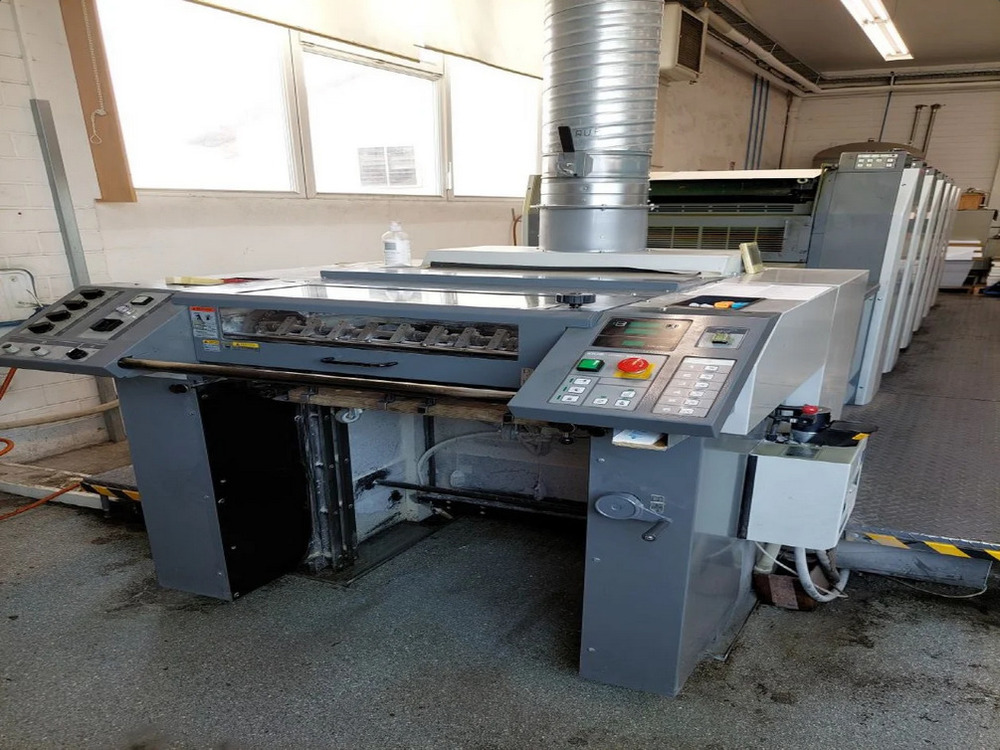 Description: Shingled Feeder<>Technotrans alpha d Dampening Solution System<>PDS-E (Printing Density Control System)<>Stack Delivery<>Plates Used: Mitsubishi Silver-Digiplate<>DPX Plate Setter<>RYOBIMATIC dampening system<>Ryobi RPC semi-automatic plate change<>Electromechanic double-sheet control<>Grafix powder sprayer<>GRAFIX IR dryer<>All washing devices