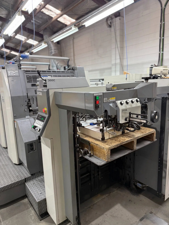 Description: PCSG remote control<>X-Rite densitometry<>Spray removal<>8 units - new rollers<>Spare perfecting jacket<>RYOBIMATIC dampening system<>ITC Ink temperature control<>Automatic blanket and ink roller wash unit<>Infra Red + Hot air dryer<>Ryobi RPC semi-automatic plate change<>Preset - automatic size device<>GRAFIX Digitronic Powder Spray