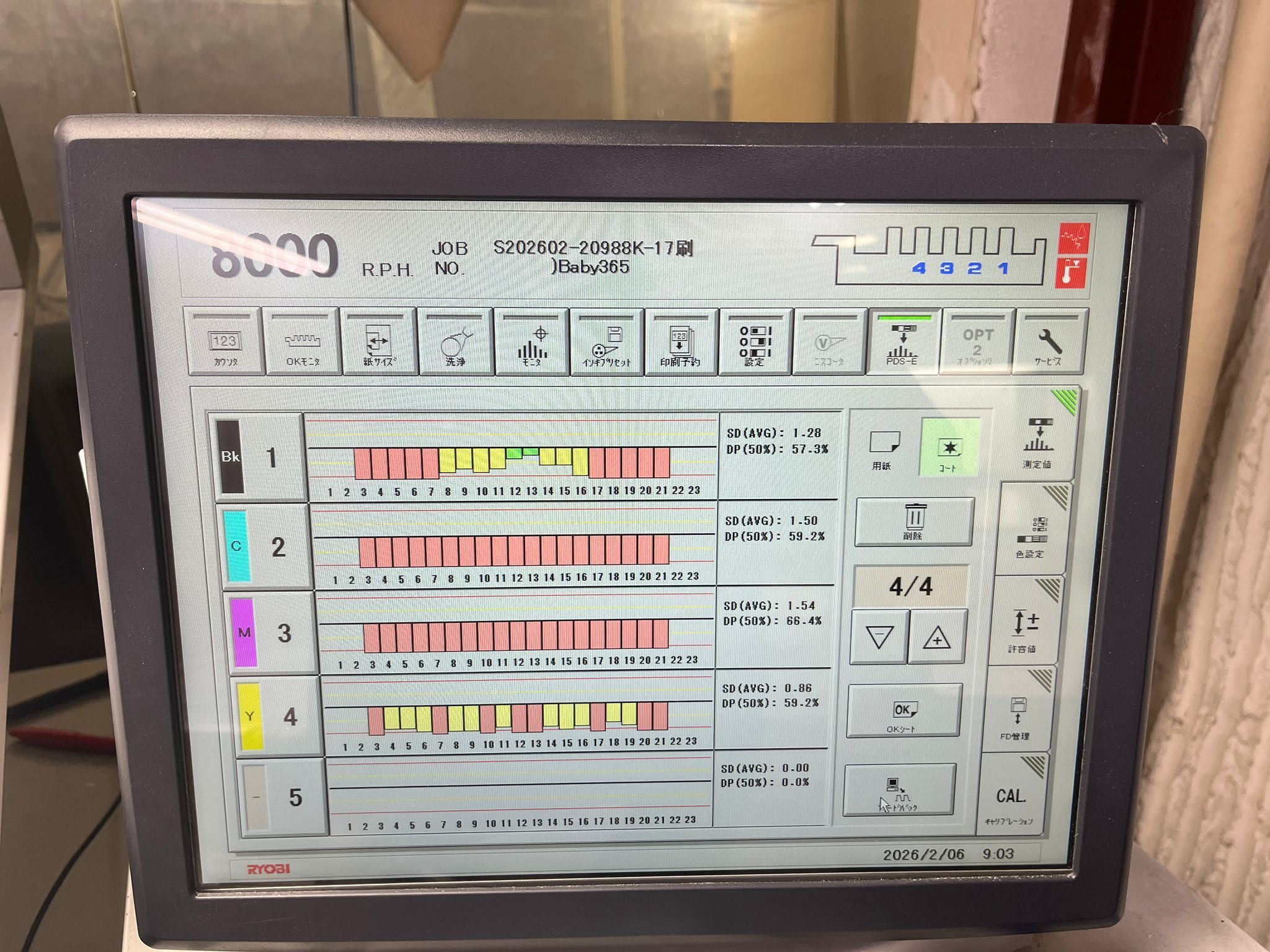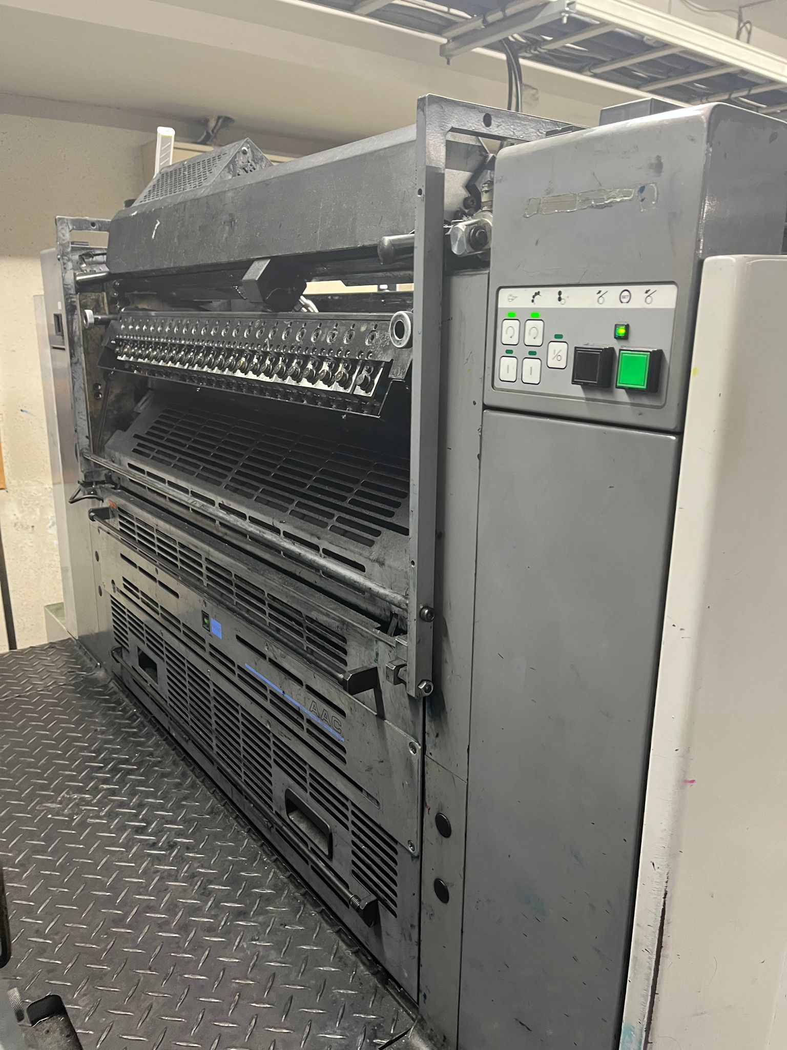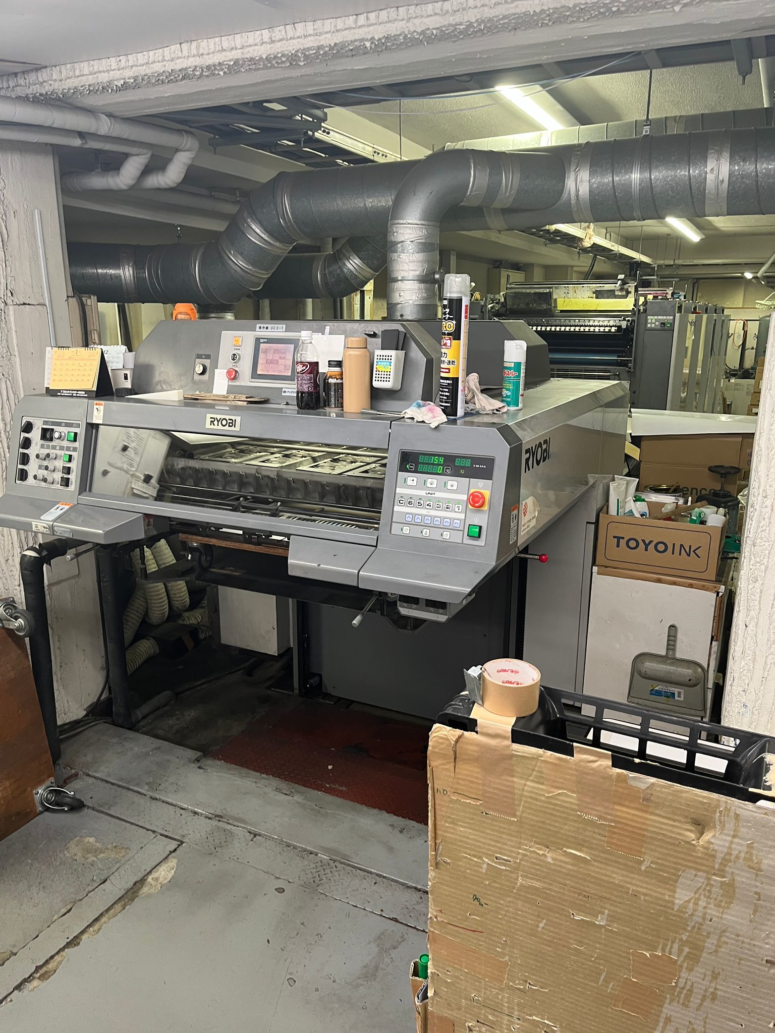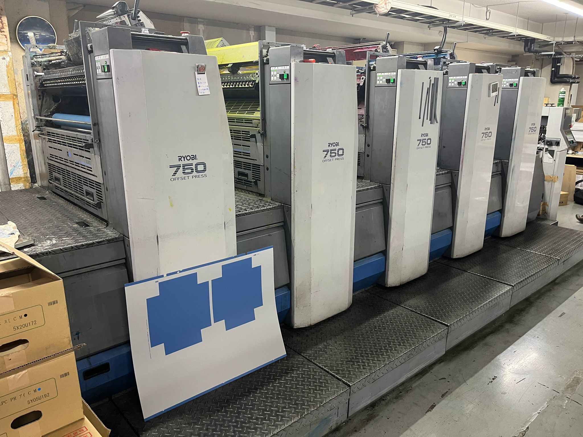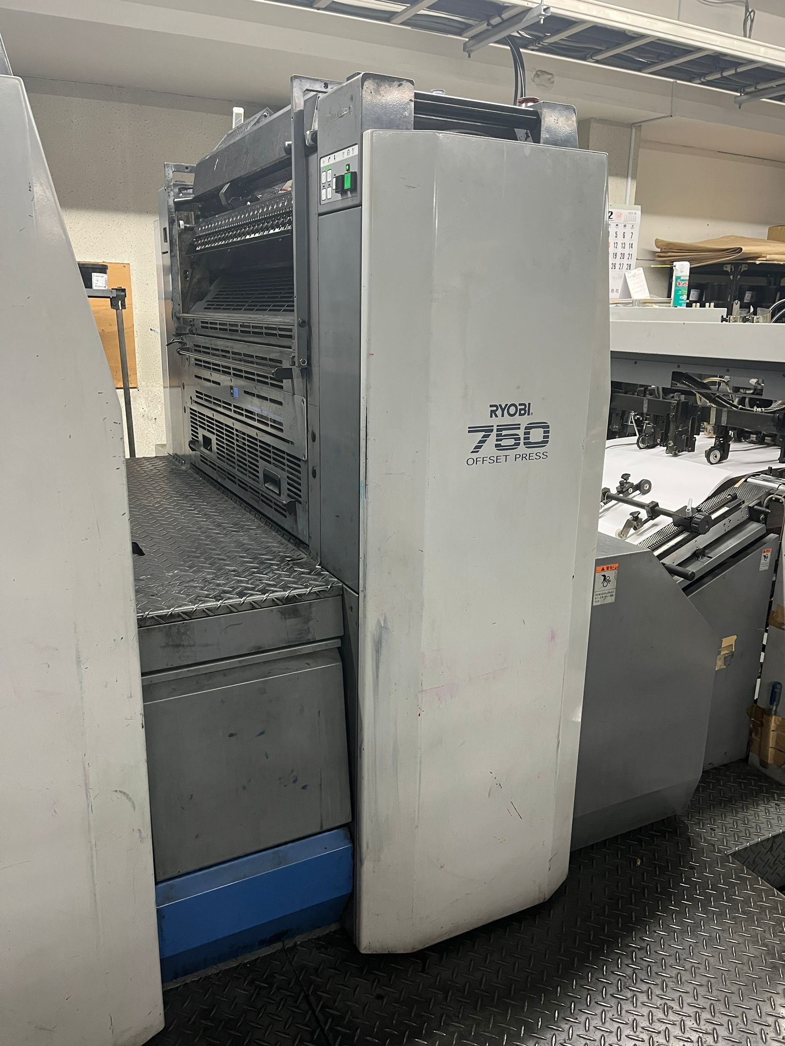 Mod. 755 L<>PCS-G<>PDS-E<>3x lamp in extended delivery<>Ink agitator <>Roller chiller<>Ryobi RPC semi-automatic plate change<>All washing devices