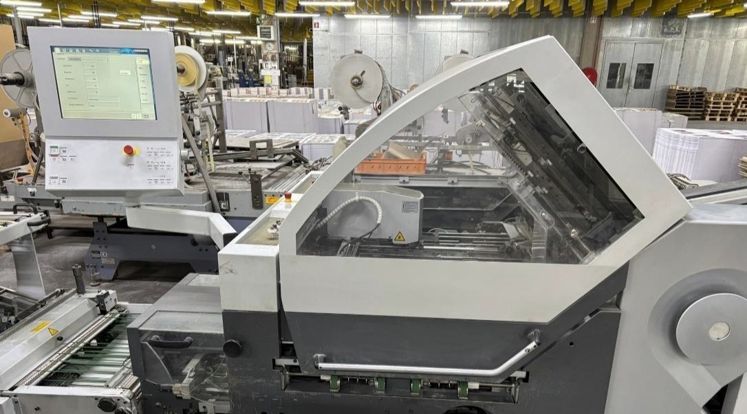 3 cross fold knives (up to 32 p)<>1 additional side fold (folding buckle)<>Automatic motorized makeready for folding rollers, buckles and knifes<>Sound hoods