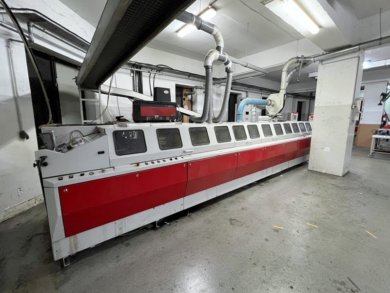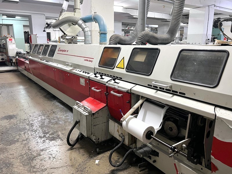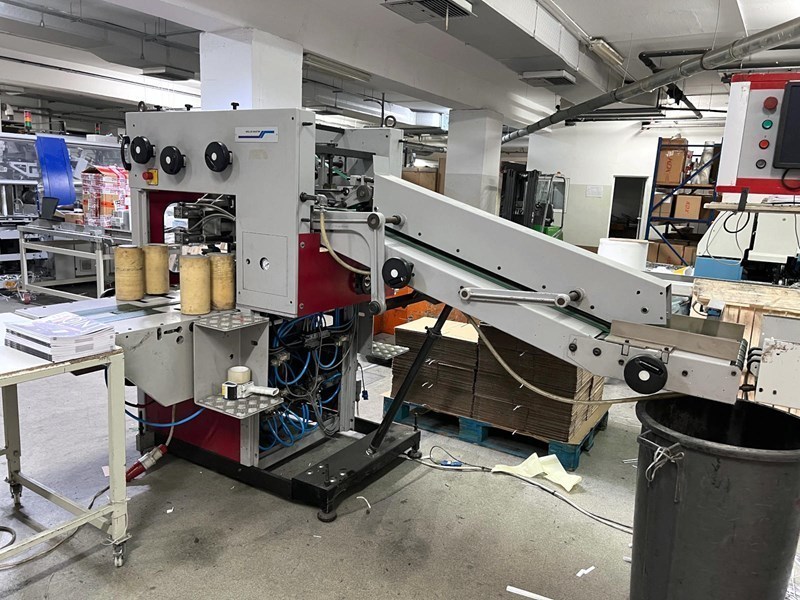 | Description: | - WST Opticontrol<>- infeed from gatherer to the perfect binder<>- spine preparation unit<>- PUR gluing device<>- two pressing units<>Conveyor belts, consisting of<>- several conveyor belts<>- Ambaflex SV 400 1800 spiral conveyor (cooling tower)<>- reject delivery<>Wohlenberg Trim-Tec 75i three knife trimmer<>Muller Martini CB16 (delivery left & right side) stacker delivery<>Hand feeding station<>Hotmelt spine + side gluing<>Premelter<>Gauzing station<>Laydown unit |