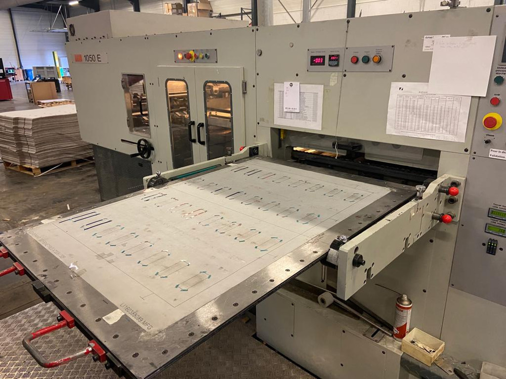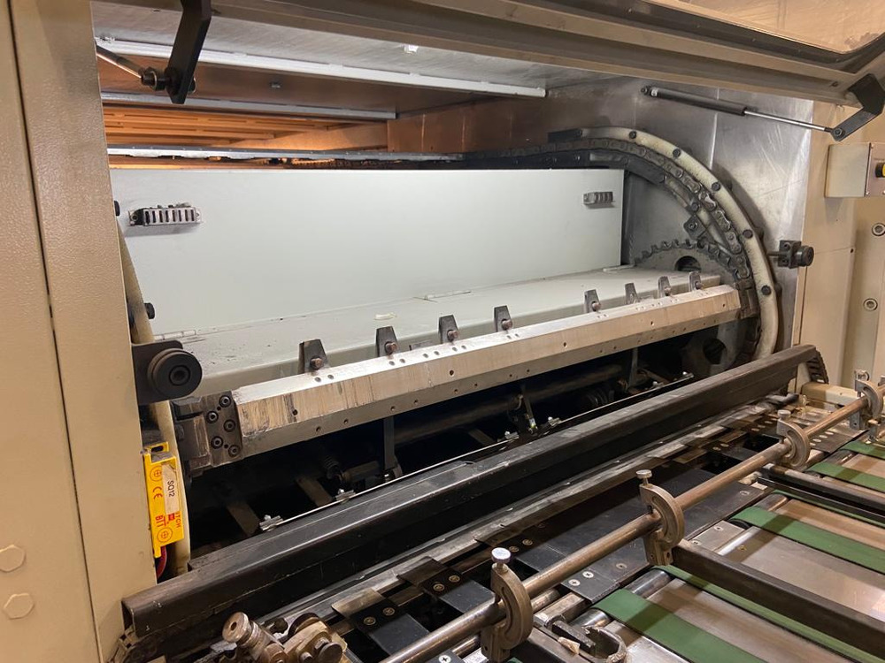 | Description: | Tork limitation on gripper bars tansmission<>Digital reading of pressure settings<>2 form holding chases<>Quick lock system for small form<>Dual axel centering system<>2 -5 mm cutting plate<>Fast positionning of superior stripping chase with dual axel centering system<>Dual axel centering system of stripping chase and board<>Steel loading plate<>Hight pile control by mechanical system<>Platen angle position control<>Touch screen operation control<>Stripping station<>Double action stripper<>Non-stop in delivery |